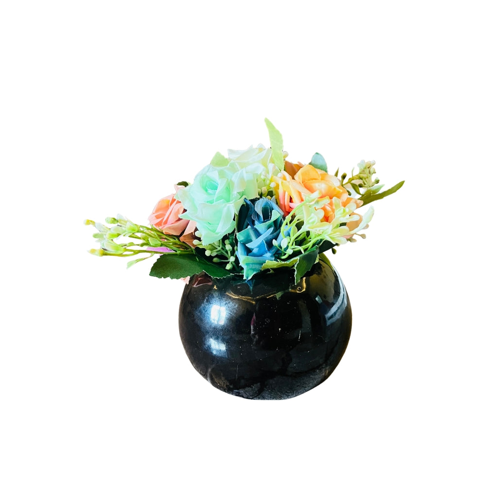 Akaar Artificial Plants for Decoration - Black Ceramic Pot with Artificial Roses