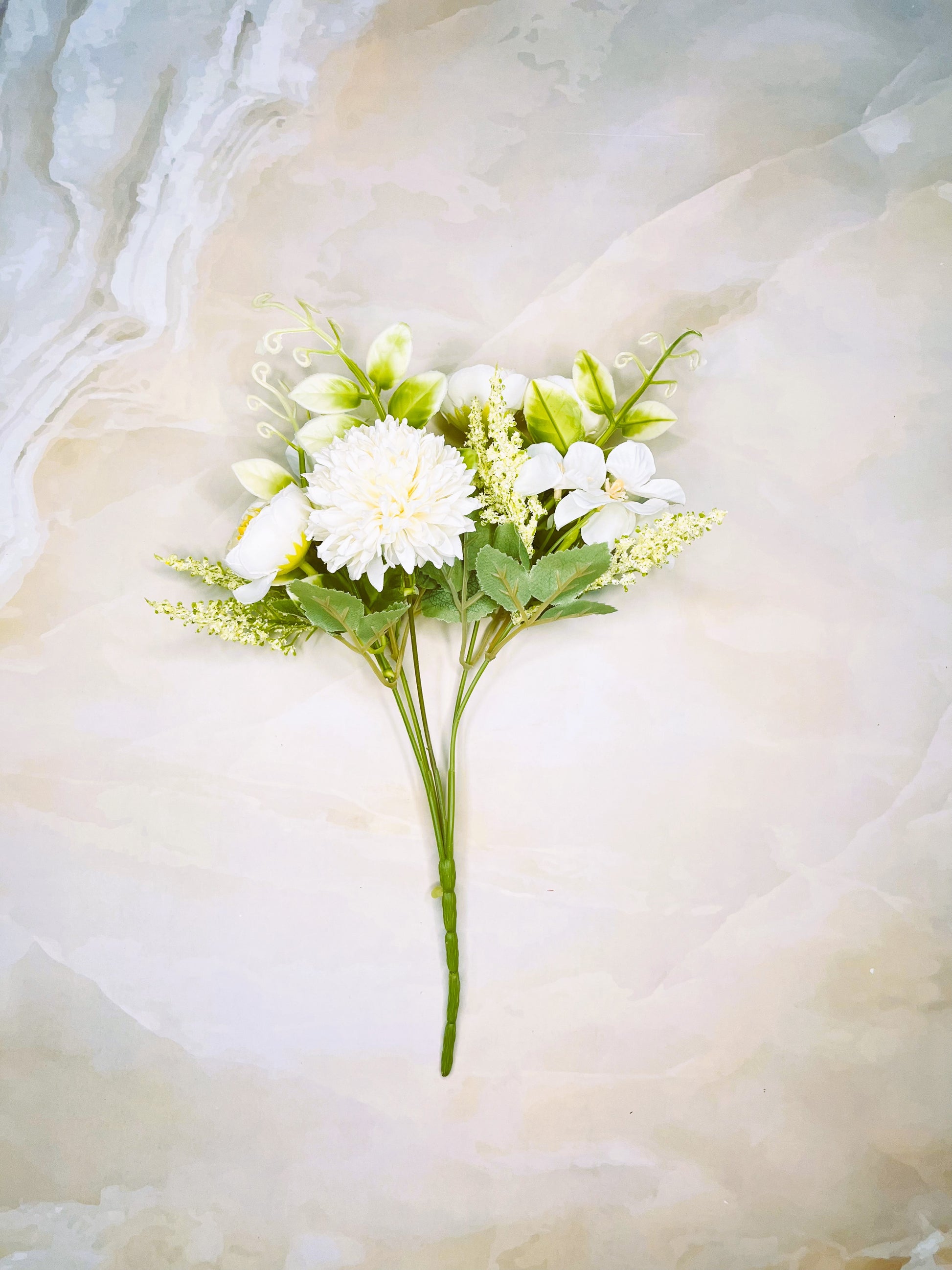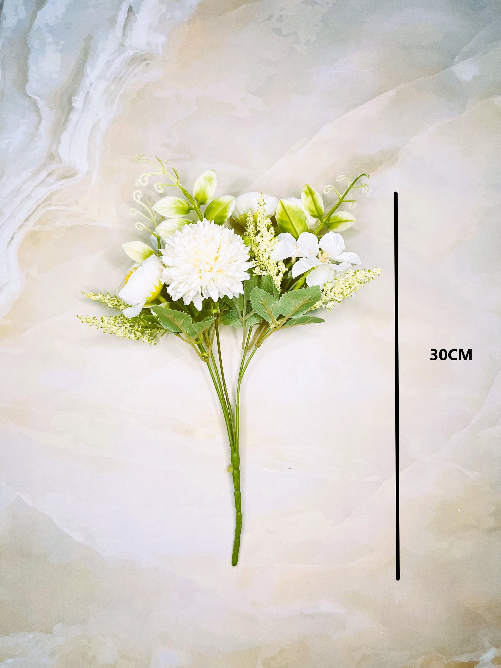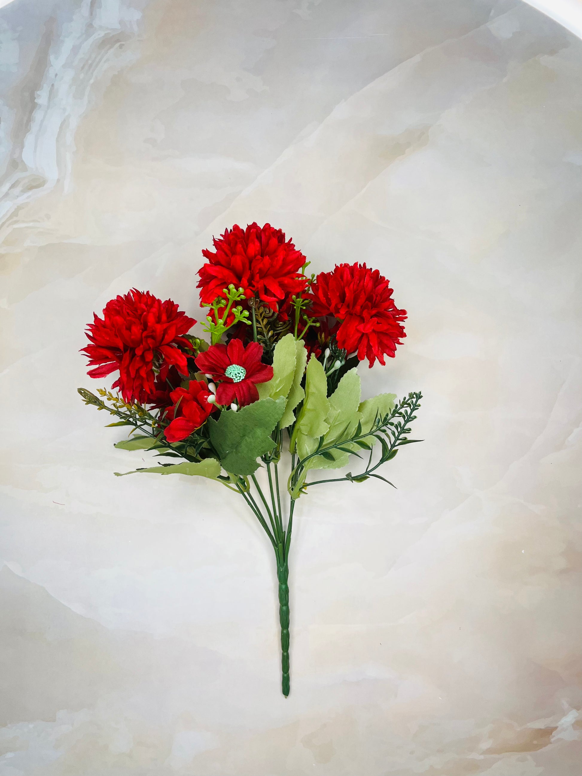 Elegant and captivating, the artificial Dahlia bunch seamlessly merges nature's beauty with lasting allure, as part of our range of faux flowers. Lifelike petals boast a harmonious blend of blush and coral, exuding timeless romance. Each meticulously crafted bloom showcases intricate textures and delicate gradients, while verdant, realistically detailed leaves provide contrast and depth. The arrangement captures the Dahlia's essence, preserved eternally in its full, vibrant bloom. Whether adorning a tabletop or gracing a vase, this faux Dahlia bunch radiates perpetual splendor, a testament to nature's magnificence preserved for all time. |