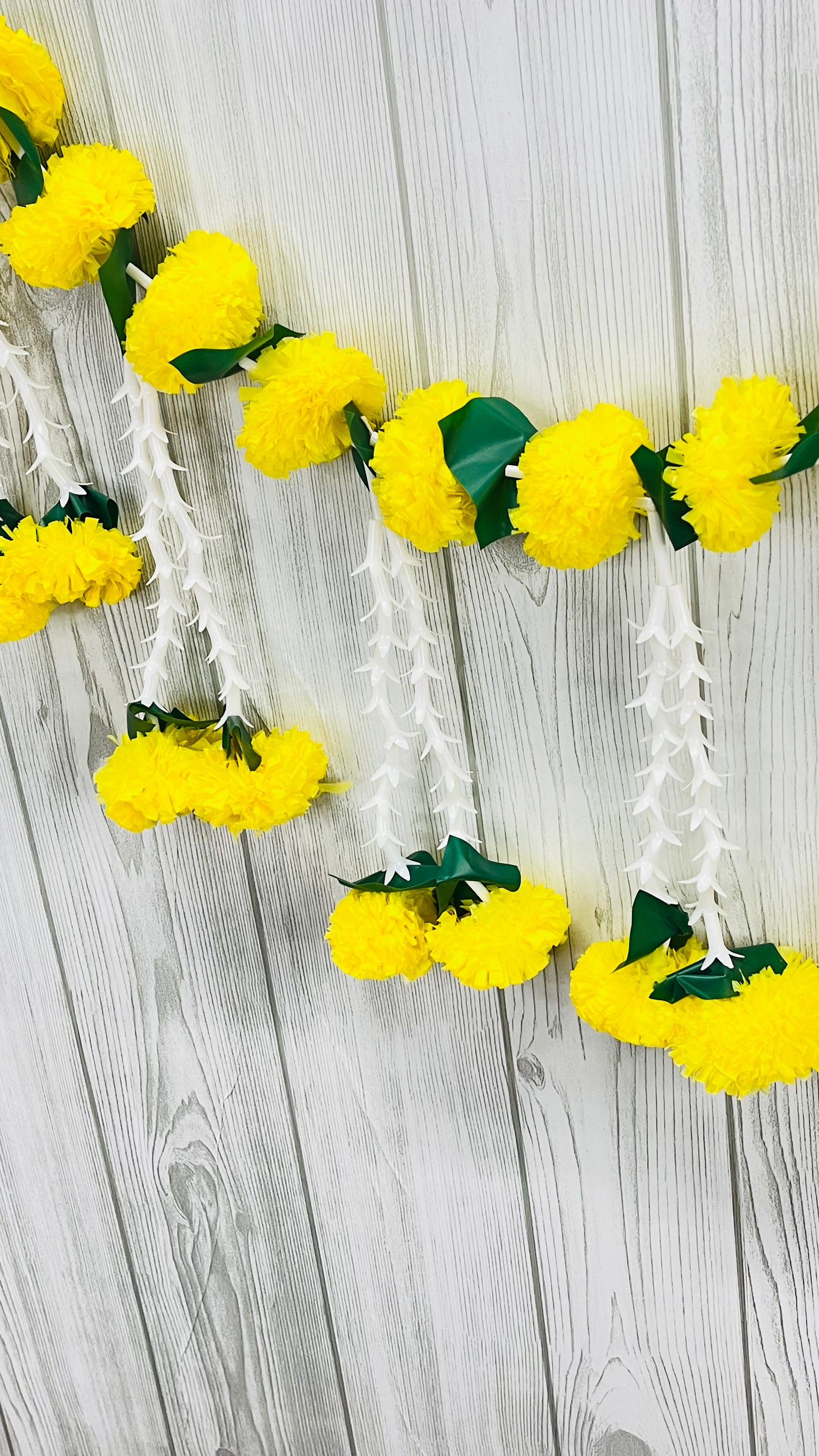 | Akaar marigold torans with tuberose jhumki are a unique and beautiful combination that adds an exquisite touch to decorations and celebrations. The addition of tuberose jhumki to the marigold toran enhances its aesthetic appeal. Jhumki refers to the bell-shaped ornaments traditionally worn as earrings in India. The use of tuberose flowers with marigold flowers in the shape of jhumki adds a touch of intricacy and uniqueness to the toran, symbolizing attention to detail and craftsmanship |