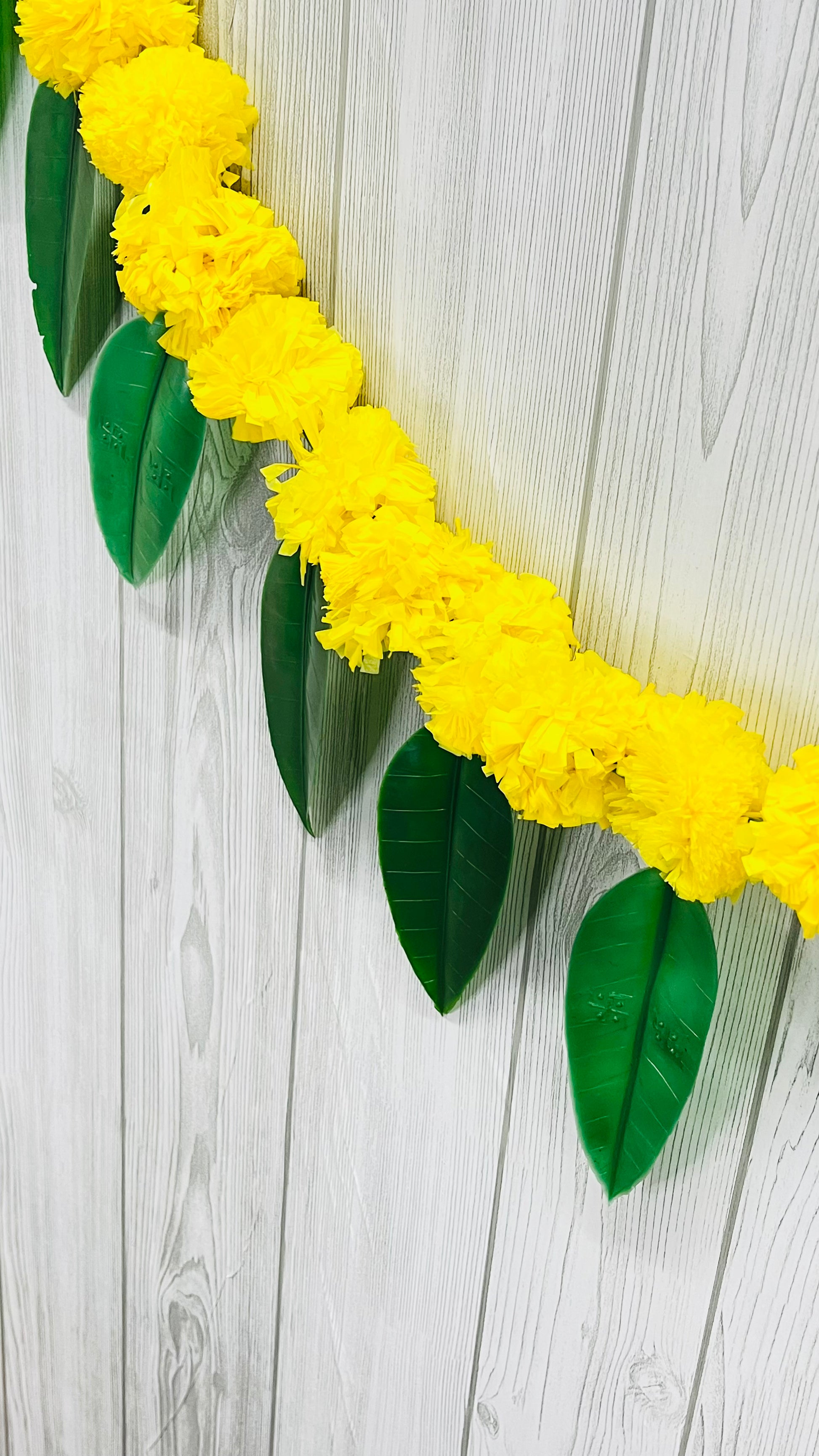 | Akaar marigold torans with mango leaves hold a special place in Indian culture and traditions. These vibrant decorations are commonly seen during festive occasions and celebrations and are used to adorn entrances, doorways, and thresholds. They are hung during religious ceremonies, weddings, festivals, and other joyous occasions. Mango leaves are commonly added to enhance the overall beauty and symbolism of the toran. |