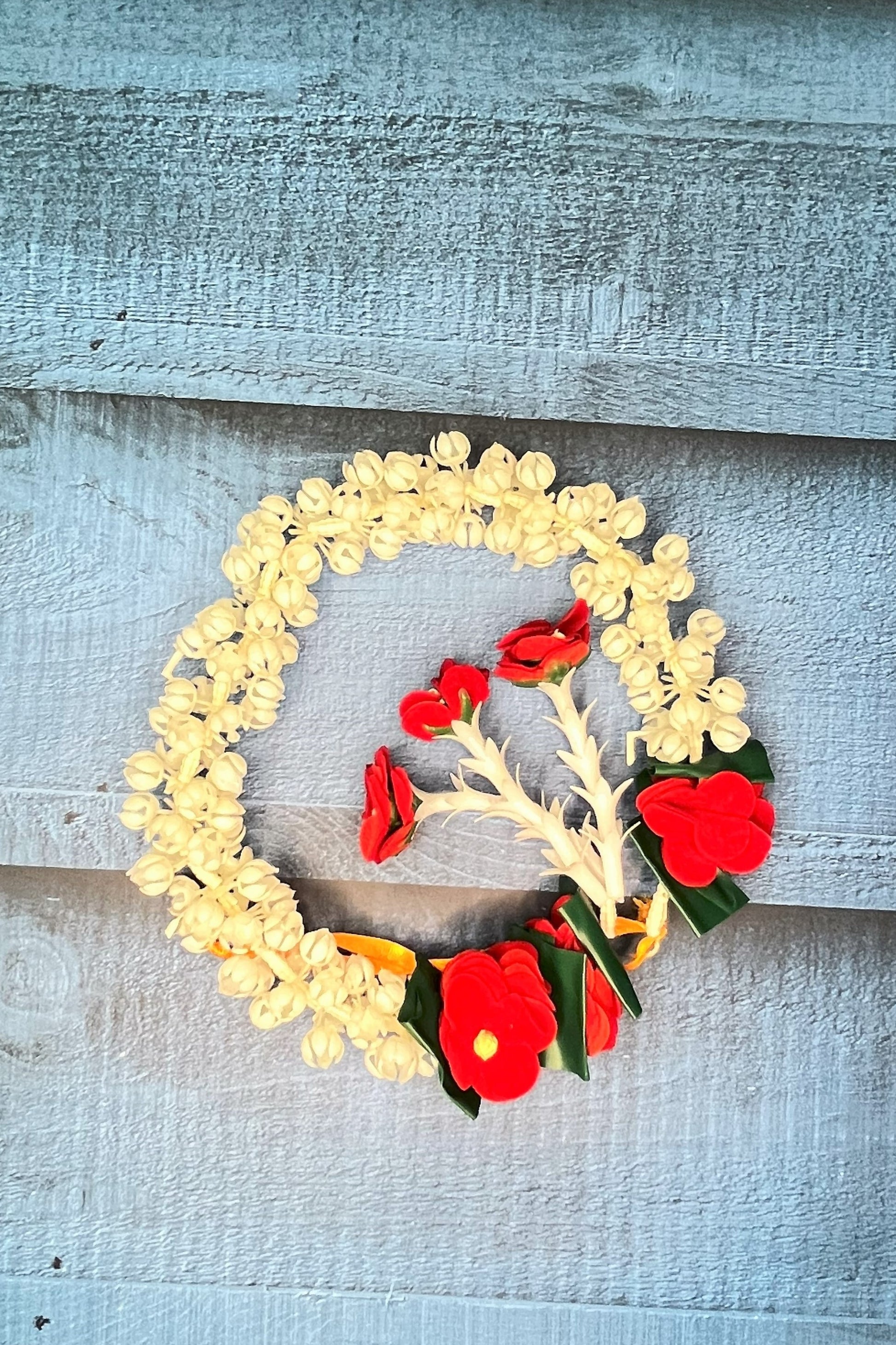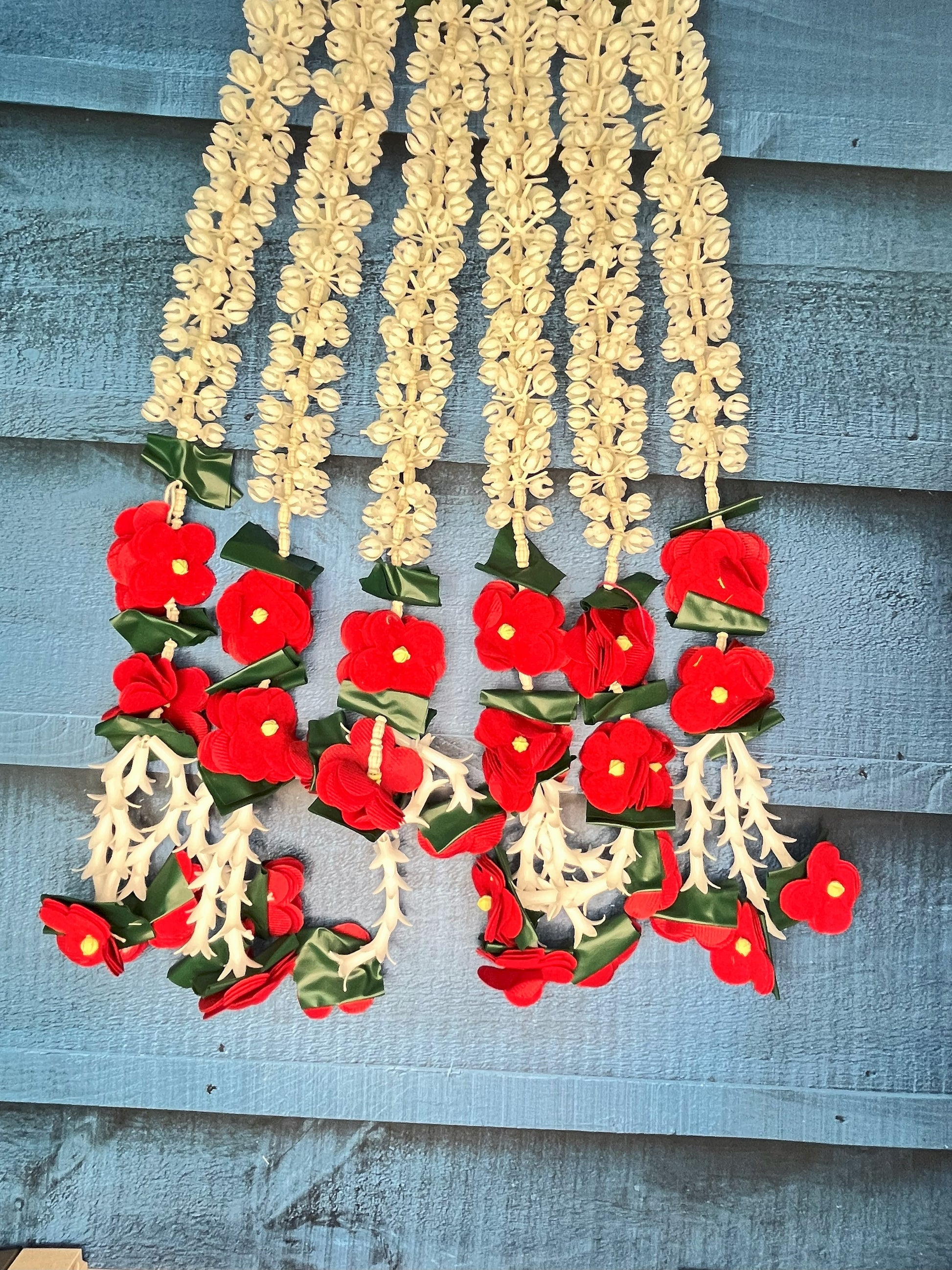 | Akaar artificial white jasmine garlands with red flower ends are a beautiful way to enhance the festive decor during Diwali or Pooja celebrations. They provide a vibrant burst of color and elegance, bringing a traditional touch to your home or event. They offer a convenient and visually appealing option for Diwali or Pooja decor. Their vibrant colors, long-lasting nature, and versatility make them an excellent choice to add a touch of traditional elegance to your festive celebrations. |