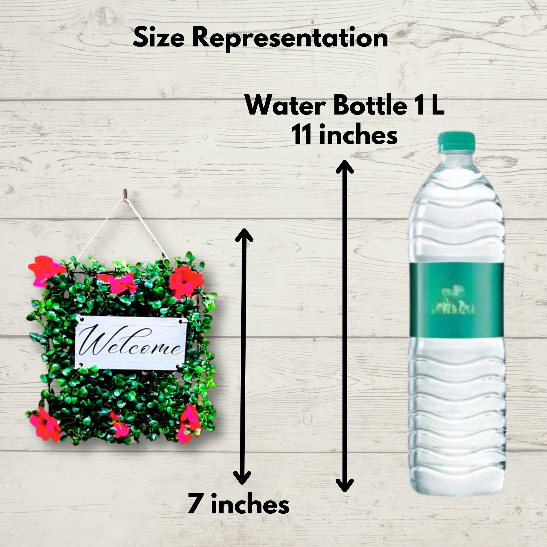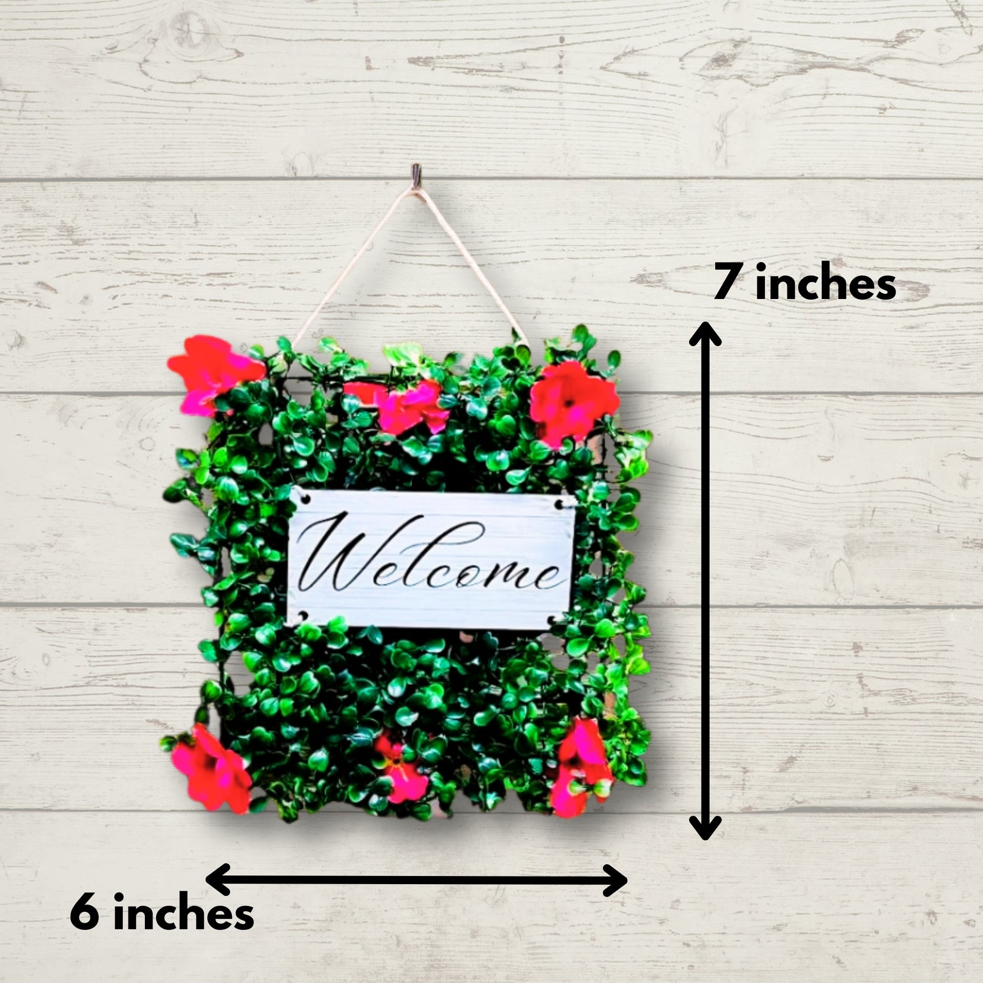 The Welcome Hanging with Pink Blossom with its vibrant colors and durable plastic and wood construction.