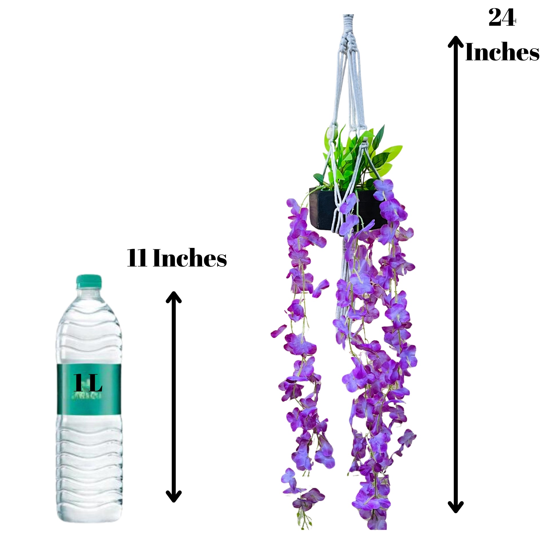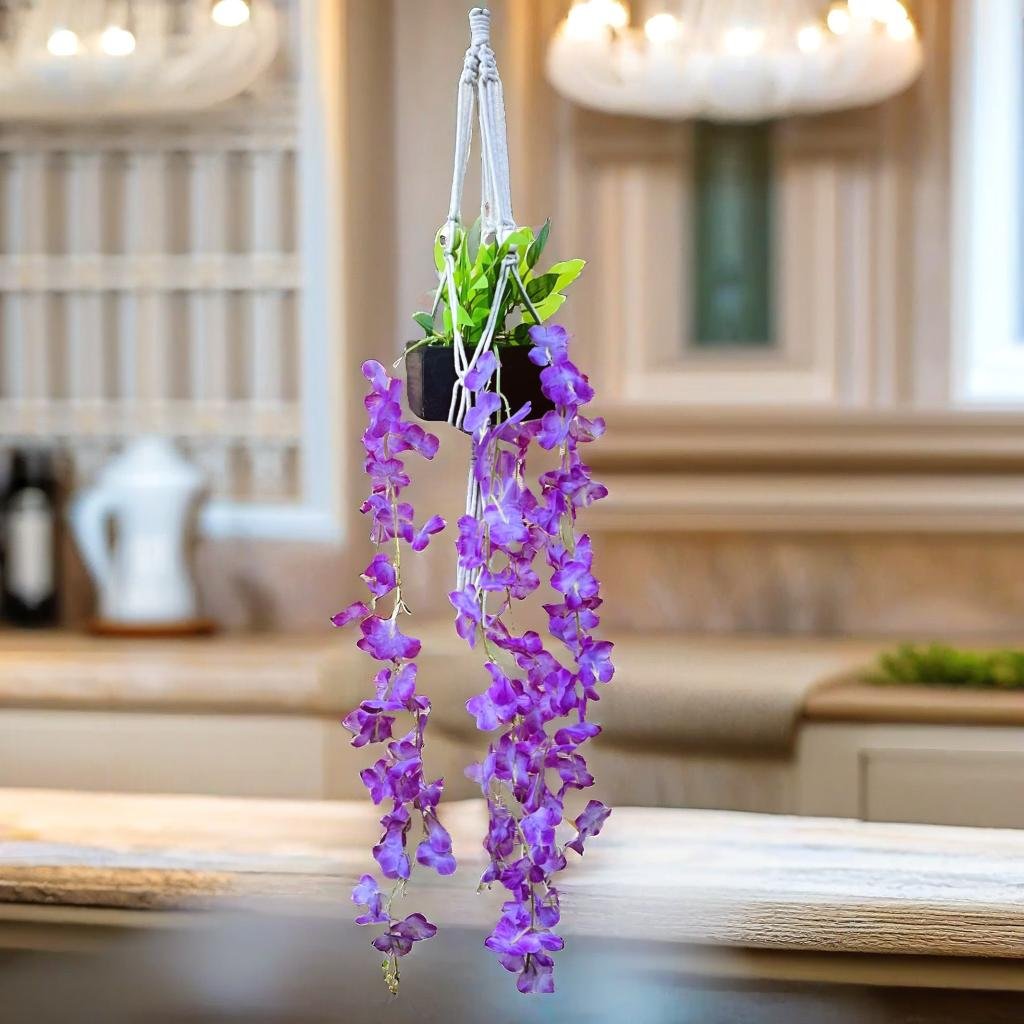 Akaar purple Wisteria Hangings with Pot in Cotton Macrame Plant Hanger